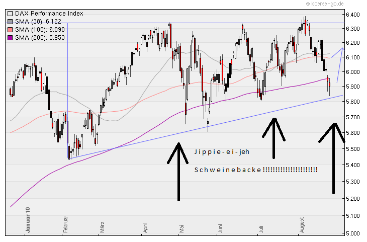 Dann habe ich noch eine Staffelposition Long-DAX-ETFs verkauft und damit dürfte die Shortquote jetzt die 50% nach oben durchbrochen haben. Auf bis maximal 75% (3/4) aber besser 66% (2/3) werde ich wagen die Shortqoute hochzufahren wenn es wider Erwarten doch weiter stark steigt, denn auch wenn die Börse dumm ist darf man ihren