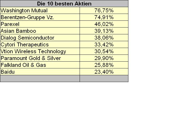 Alle Aktien in diesem Wettbewerb wurden am 30.12.2009 (Schlusskurs) gekauft und werden am 30.12.2010 (Schlußkurs) verkauft.
