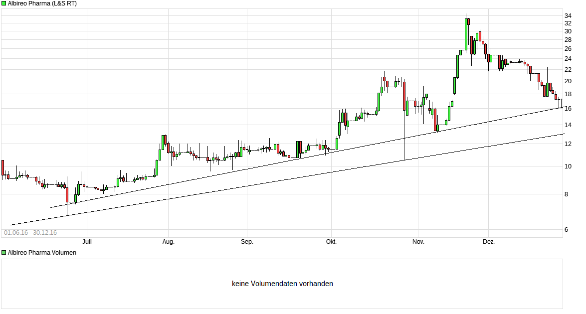 http://www.ariva.de/news/albireo-pharma-laesst-anleger-zittern-5992896Ich schrieb (ich glaube in dem big-player-thread), als es von 25 Richtung 20 ging, sinngemäß: Es ist doch klar, dass die Aktie fällt. Viele haben noch dieses Jahr, bzw. per 15.12. auf bomben-News gewartet und die kamen nicht....