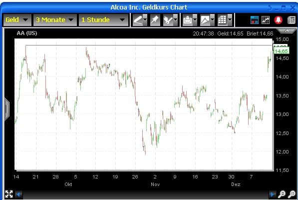Ich hoffe, der Dollar hält durch und schwächelt nicht ab und es kommt nicht zum GAU und zur finanziellen Kernschmelze. Dann schaue ich gerne der Entwicklung von Alcoa 2-3 Jahre zu ...