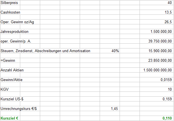 habe ich übenommen von einem anderen User und da war der Silberpreis ein noch ganz anderer.