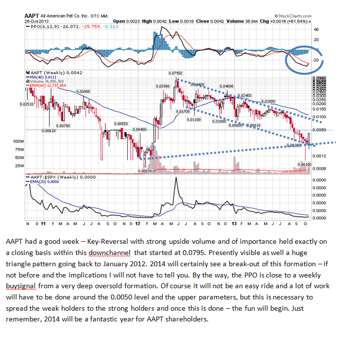Habe jetzt meinen Einstand konstant nach unten gezogen und liege jetzt bei 0.005. Ich glaube an einen Turnaround umsomehr, als diejenigen, welche die Gesellschaft in den letzten 3 Jahren finanziert haben das gegenwärtige Niveau nutzen um auch einen besseren Kurschnitt zu bekommen. Glaube auch, dass von dieser Seite her Druck auf das Management gemacht wurde was dann zur Meldung betr. Lohnkürtzung geführt hat. Es ist klar, die Firma muss jetzt neben Amazon und Walmart noch neue Konten reinbringen um so eine breitere Abfächerung zu erhalten. Das Produkt ist gut, der Name auch und der Trademark ist gesichert - aber all dies nützt nichts, wenn keine durchschlagenden Verkäufe erzielt werden, weil bis zum Evenbreak wird die Gesellschaft fremdfinanziert werden müssen, was automatisch zu mehr Verwässerung führt ohne man findet eine andere Finanzierungsmöglichkeit wie Factoring etc. Fazit: Bin drin und bleibe drin und hoffe auf einen Turnaround im 2014.