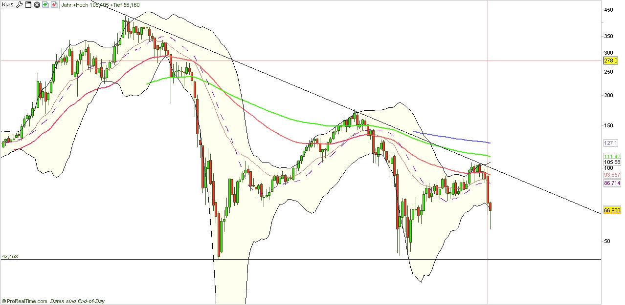 Die Allianz scheint noch attraktiver in dieser Krise, nachdem sie sich von der Dresdener getrennt hat. Zwar ist die Allianz nicht ganz so solide und konservativ wie die MunichRe, aber zahlt auch regelmäßig eine Dividende von über 4 Euro aus, in einem miserablen Jahr geht es mal auf 2 Euro runter, aber im Grunde genommen ein typischer Dividendentitel. Bei Kursen um die 60 € nähern wir uns auch hier historischen Tiefstständen. Hier winkt auch bei einem antizyklischen Langzeitinvest über 10 Jahre eine druchschnittliche Dividendenrendite von über 6%, auch wenn sie im kommenden Jahr ebenfalls geringer ausfallen könnte, doch sonst sähen wir auch nicht dieses niedrigen Kaufkurse. Hier rechne ich ebenfalls noch bis Oktober mit einem Antesten der 50 Euro Marke. Sollte man sie wirklich für unter 50 Euro bekommen, winkt eine durchschnittliche Dividendenrendite von über 8% über lange Zeit. Und auch hier sind die Kursgewinne nicht berücksichtigt.