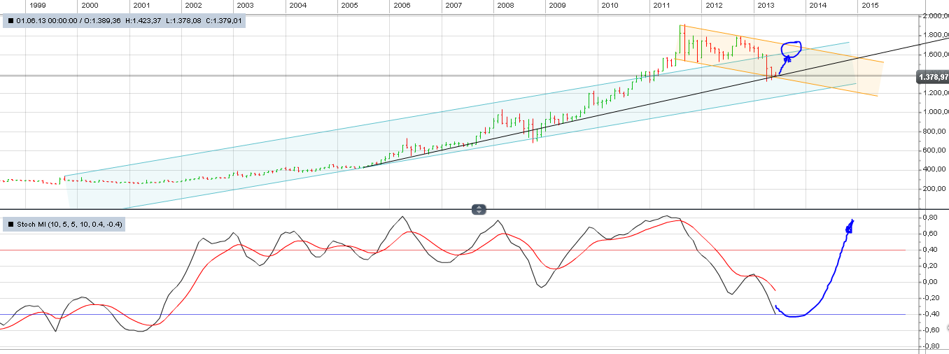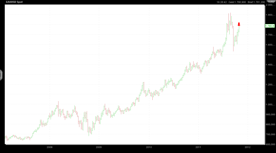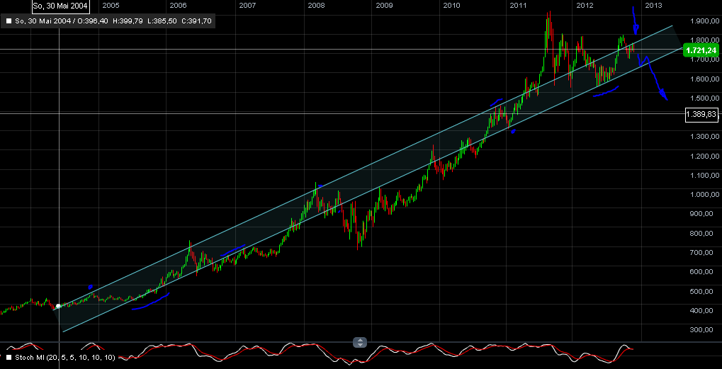 auch nach einem Rückgang um 300 Dollar noch voll intakt auch wenn es jetzt schon über 400 Dollar geworden sind. Es gab nur wenige, die den Rückgang von Anfang an getradet haben, meist wird die grosse Masse erst drauf aufmerksam wenn der Drops schon gelutscht ist. Und wenn dann alle bei jeder leichten Schwäche shorten, kommt meist das Gegenteil......daher mein Gedanke an steigende Kurse. Ich rufe auch keine neuen Highs aus aber was wir in den letzten 2 Jahren gesehen haben, besonders in den letzten 6 Monaten, ist in meinen Augen nichts anderes als eine gesunde Konso nach einem 6 jährigen kontinuierlichem Anstieg um mehrere 100%.