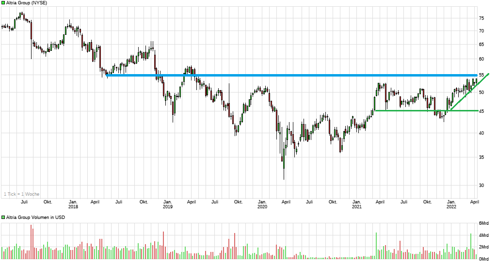Die Deal-News veranlassten den Bernstein-Analysten Callum Elliott, sein Rating für Altria auf Marktperformance zu senken, nachdem es seit Januar 2021 eine Outperformance erzielt hatte. Er senkte sein Aktienkursziel von 58 USD auf 53 USD.