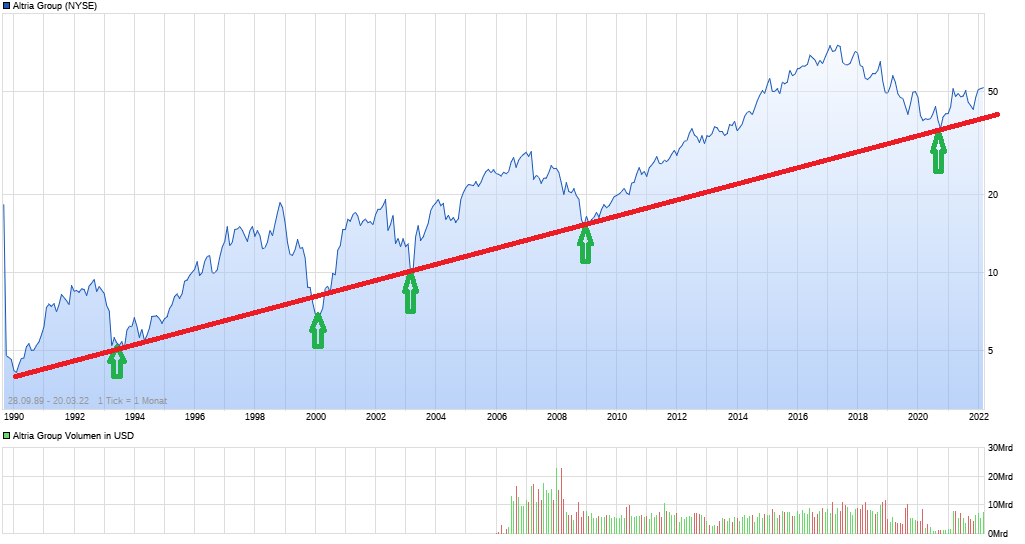 Trotz des Rückzugs ist die Aktie von Altria im bisherigen Jahresverlauf immer noch um 7,6 % gestiegen, während der S&P 500 um 15,7 % gefallen ist.