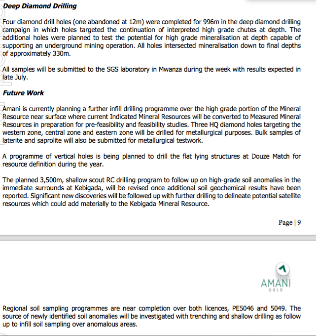 Macht einen Kaufpreis von ca. 30 Mio. 4.5 Mio. gehen wieder zurück an LW. Insgesamt also ca. 40 Mio. investiert. Wenn wir davon ausgehen, dass Amani die 5 AUC mit der Kebigada Ressource wert ist. Dann wäre der Laden anstatt für 60 Mio. für 40 Mio. übernommen worden. Wenn man sparsam haushält, dann sind noch 10 Mio. in der Kasse, die auch noch eingesagt werden. Auf die schneller mal 30 Mio. 100% gemacht. Das könnte sich doch sehen lassen?
