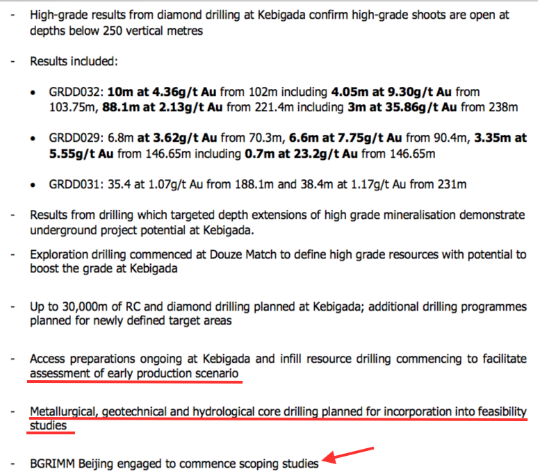 Auf die Highlights beginnend mit High-Grade Resuls am Anfang jedes Berichtes, gebe ich nichts mehr. Kebigada und auch DM hat gezeigt, dass am Ende abgerechnet wird und dann zählt was drin ist und das ist halt alles, nicht nur die Highlights.