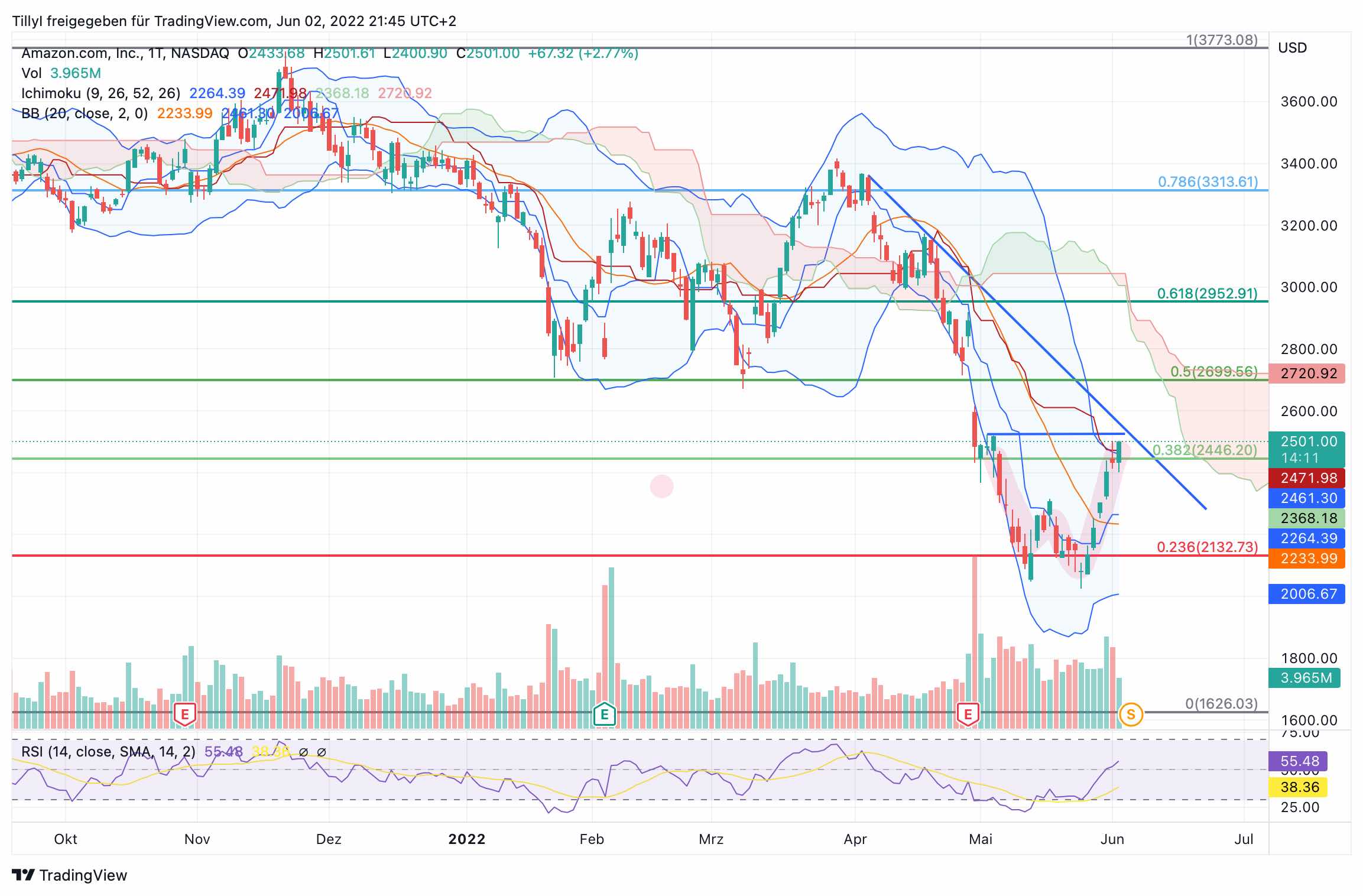 gibt es nicht und anders als im DAX gibt es keine Regeln oder verbindlichen Zeitpunkte dafür. Es gibt ein Komitee, was sich nach sehr soften Kriterien dazu entscheiden kann, dort gehören Reputation, Wachstum, finanzielle Stabilität, eben auch Handelbarkeit der Aktien dazu. Damit war nicht mal der Split notwendig, eher, wenn er damit begründet war, ein Zugeständnis, weil es scheinbar ungern gesehen ist, wenn eine Aktie weiter mehr als 200 -300$ kostet. Alle aussagen über eine mögliche Anpassung des Dow Jones und einer Aufnahme von Amazon oder Alphabet ist erst mal Wunschdenken und Spekulation. Es gibt eine Markterwartung/Haltung (und damit vermutlich auch ein Handlungs Druck auf das Komitee), dass diese beiden Werte bald einziehen.