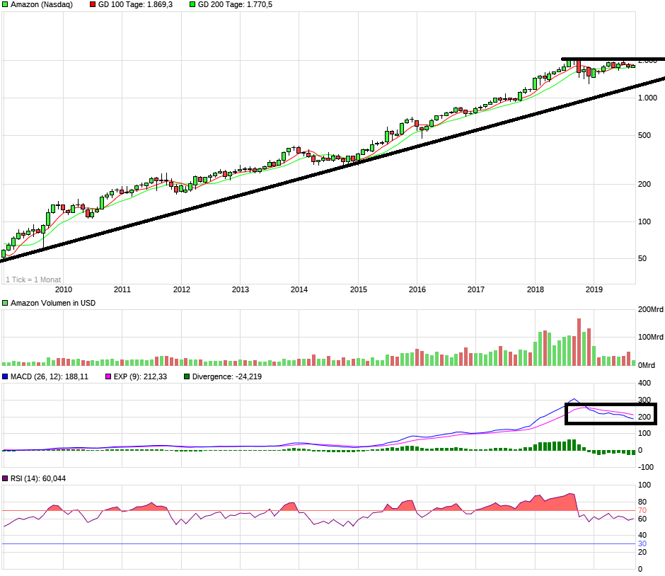 Dass beim EPS gepatzt wurde, finde ich nicht besonders schlimm, da der bei Amazon schon immer zweitrangig war. Wenn das Unternehmen irgendwann kaum noch wächst, dürften auch die Investitionen deutlich zurückgefahren werden und der Gewinn kommt dann von alleine. Das Problem sehe ich derzeit eher beim Umsatz. Zwar wurden die Schätzungen in diesem Quartal übertroffen, dennoch lag der Umsatzausblick in diesem und auch schon in den letzten Quartalen teils deutlich unter den Erwartungen, was man sich bei der aktuellen Bewertung eigentlich nicht leisten darf. Der Umsatz war schon immer der eigentliche Kurstreiber bei Amazon, aber die Zeiten des Wachstums über 20% scheinen nach diesem Quartal nun endgültig vorbei zu sein. Die Bottom-Line von dem Konzern sieht gerade einmal ein Wachstum von 11% vor, was durchaus ein Warnzeichen wäre. Das Problem liegt hier anscheinend im internationalen Geschäft, welches obwohl es nur halb so viel Umsatz wie das Nordamerikageschäft erzielt, deutlich schwächer wächst. Ansonsten kann man bei 24% Wachstum in Nordamerika und 35% bei AWS wenig aussetzen. Aber im internationalen Geschäft scheint es mit der Expansion wohl nicht ganz voranzugehen. Wichtig wäre hier, dass man sich auf dem indischen Markt als Marke etablieren kann und vor allem sich gegen Alibaba durchsetzen kann. Wenn das Umsatzwachstum in nächsten Quartal wirklich weniger als 15% betragen sollte, bei einer weiter geringen Marge, werde ich ernsthaft darüber nachdenken, meine Anteile zu verkaufen. Man könnte dann die Bewertung wirklich nicht mehr rechtfertigen. Erfreulich ist immerhin der operative Cashflow. Mal schauen, wie sich morgen die Analysten morgen dazu äußern werden. Das ATH im Nasdaq wird aber wahrscheinlich erst einmal vertagt.
