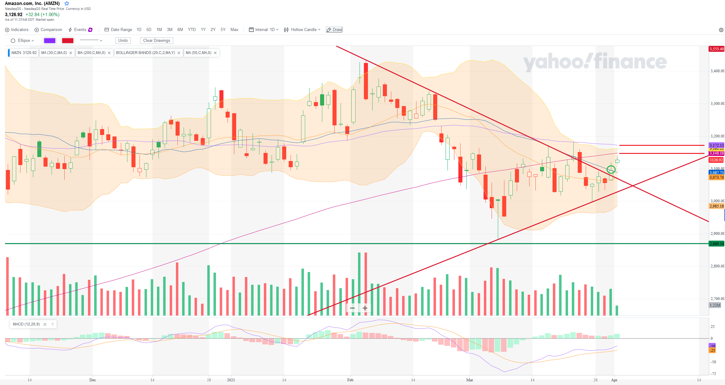 Wir haben die 200-Tagelinie durchschritten und Amazon drohte nach unten abzukippen, aber die Bullen haben wieder Mut gefasst, auch wenn noch nicht richtig Zug reingekommen ist. Ich gehe aber davon aus, daß wir uns jetzt langsam immer weiter nach oben bewegen werden und spätestens die Q1-Zahlen eine Sommerrally bei Amazon auslösen werden.