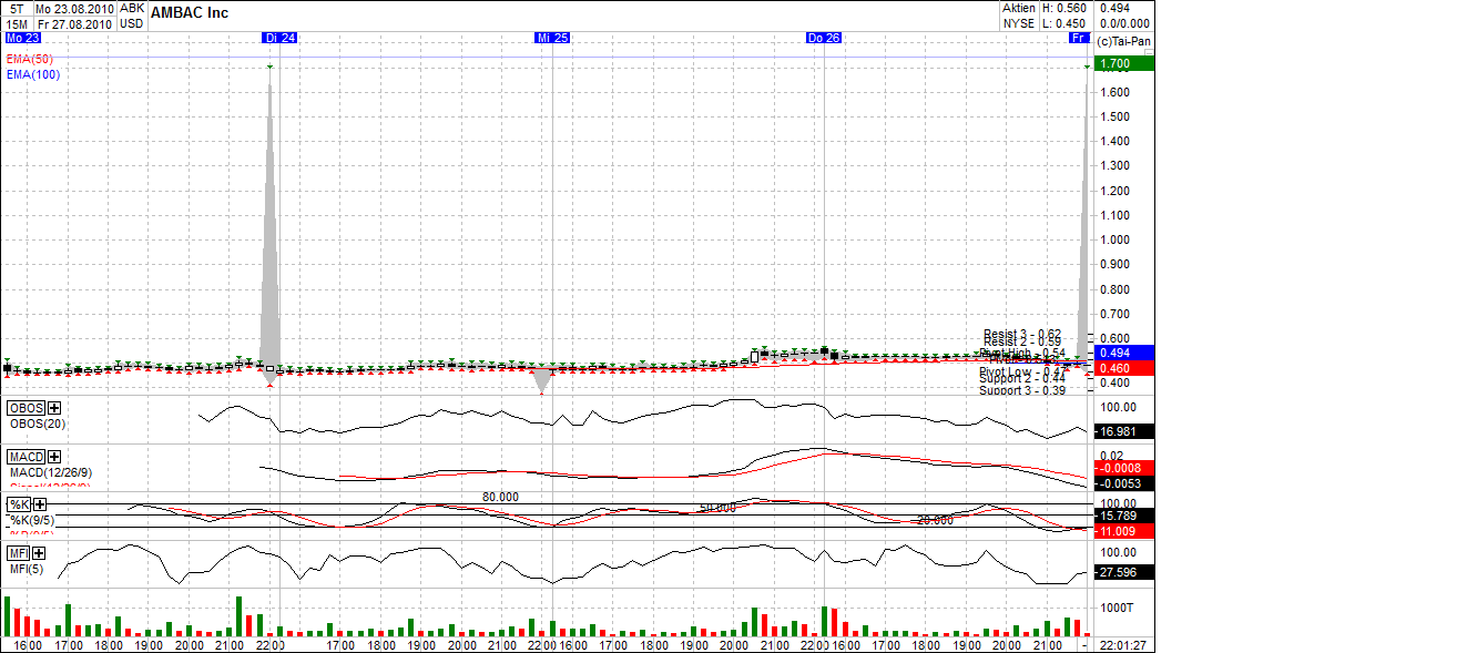 The share price of Ambac Financial dipped approximately 9.5% on Thursday to close at 49 cents. The stock has lost 40% of its value in the past three months and approximately 50% since the start of 2010.