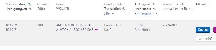 PS: Die Diskussion ob einer Aktien hat oder nicht ist mMn auch überflüssig, da man es weder beweisen kann (auch mit einem Bild nicht – danke an Photoshop), noch weil eine Investition die Eintrittskarte zu diesem oder irgendeinem Forum ist. Jeder kann doch hier mitreden. Vielleicht informieren sich ja gerade welche, um gerade in AMC zu investieren...
