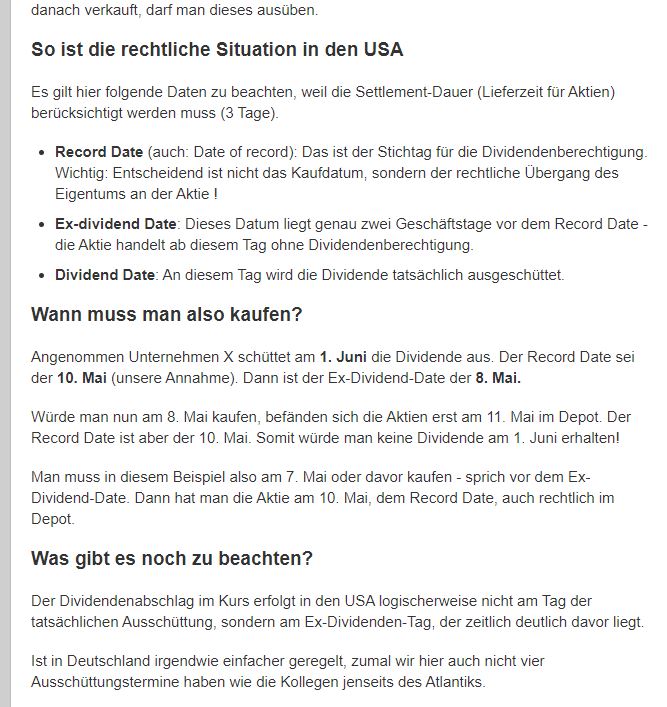 Sobald die Dividende ausgegeben wird, wird der Kurs unserer Stammaktien fallen. Als Investor