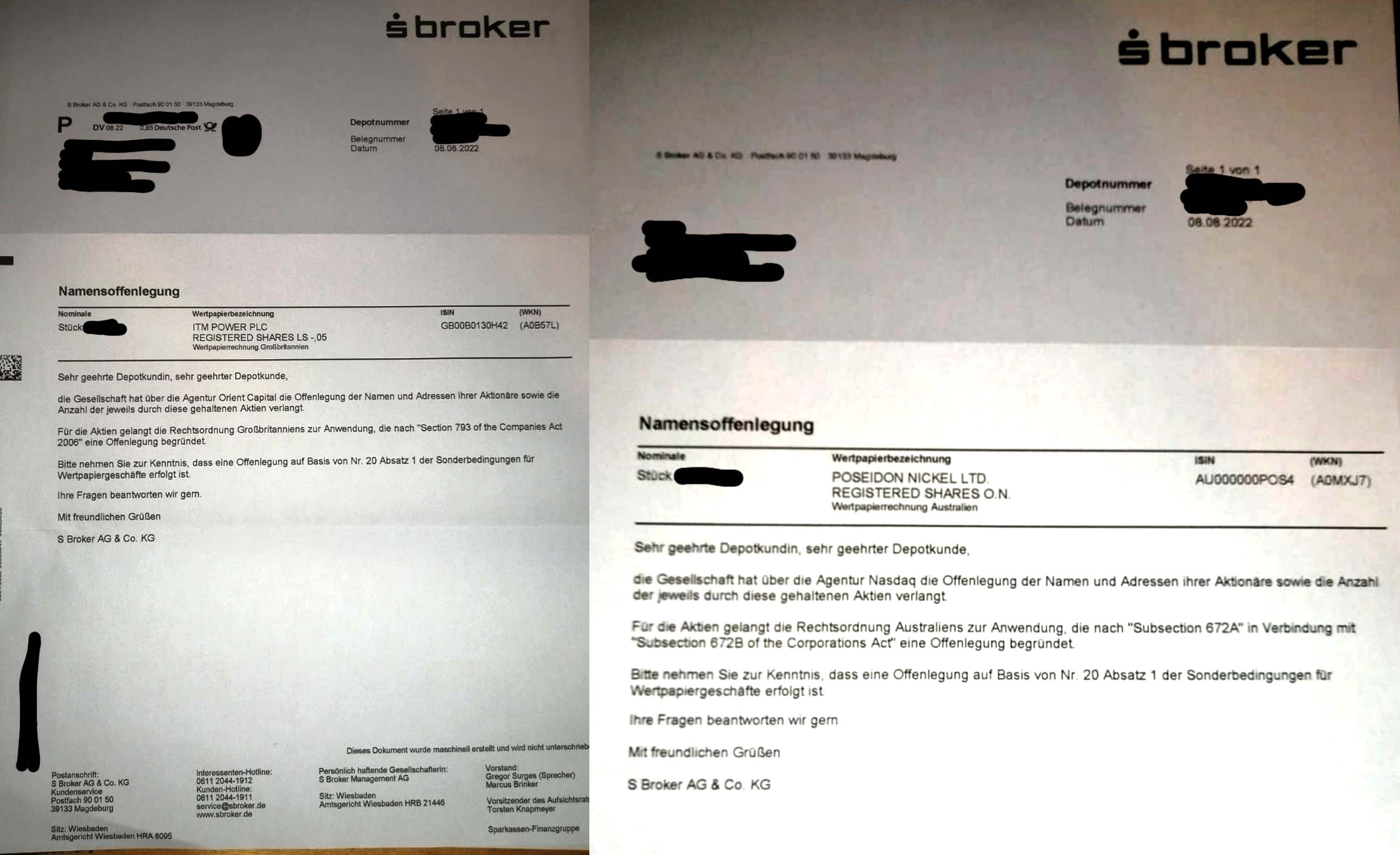Sehr wahrscheinlich, dies deutet zumindest der Zusatz "Registered Shares" an, handelt es sich bei deinen beiden Aktien um sogenannte Namensaktien und in diesem Falle, wohl auch auf Grundlage des britischen wie auch australischen Rechts, kann die Firma sich sowohl die Namen wie auch die Anzahl der gehaltenen Shares ausweisen lassen und auch in Deutschland, und sehr wahrscheinlich auch in Amerika, gibt es solch eine Regelung, aber nur wenn es sich um Namensaktien handelt (zumindest in Deutschland). Wo es hier noch einen undeutlichen Kontext gibt, ob es sich bei den Aktien von AMC auch um Namensaktien handelt. Theoretisch müssten es auch welche sein, weil sie auch den Zusatz "Registered Shares" tragen.