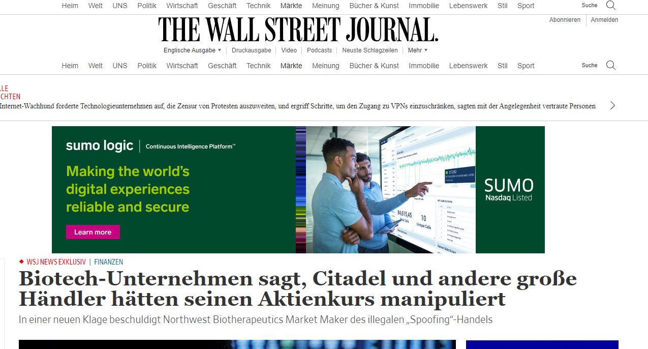 In einer Klage, die am Donnerstag vor dem Bundesgericht in Manhattan eingereicht wurde, behauptete Northwest Biotherapeutics Inc., dass die Marktmacher wiederholt „Spoofing“ betrieben hätten, bei dem Händler Aufträge mit der Absicht erteilen, andere Anleger über die Nachfrage einer Aktie zu täuschen und den Preis zu manipulieren.
