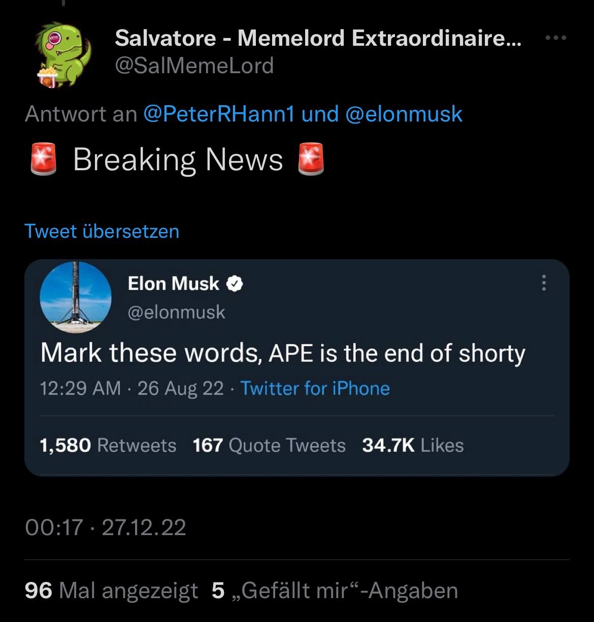Ob man mich nun als ape bezeichnet oder nicht, ist mir relativ egal. Jedenfalls halte ich AMC Aktien durchgängig schon länger als mancher, der sich hier als ape sieht! Damit stehe ich mit meinem Invest ganz klar gegen die HF’s, folge aber auch nicht nach Lemming-Art anderen Leuten in den Abgrund!