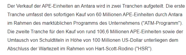APE wird in AMC umgewandelt und dann machen wir den Reverse Split.