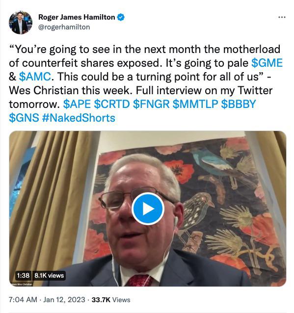 Hmmm, das würde ja dann auch bedeuten, das Wes Christian einen Mandanten hat, mit dem er gemeinsam gegen die SHFs vorgeht/vorgehen will, obwohl die Firma seines Mandanten überhaupt nix mit Naked shorts zu tun hat?