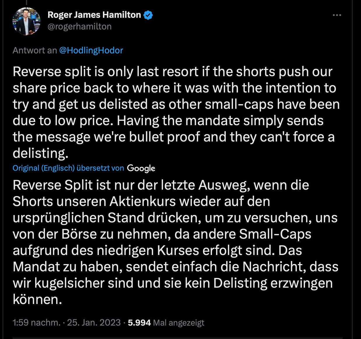 dass meistens nach einem Reverse-Split der Kurs trotzdem munter weitergeshortet wird, und prompt wird jetzt von diesem CEO konkret zu dieser