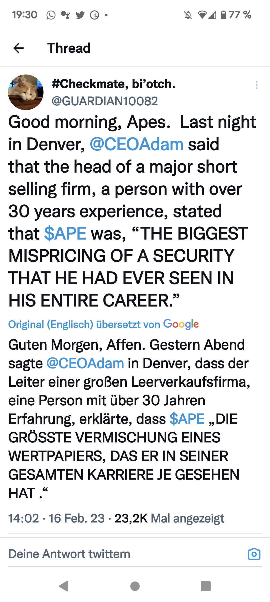 Bei APE kenne ich die Short-Quote nicht.