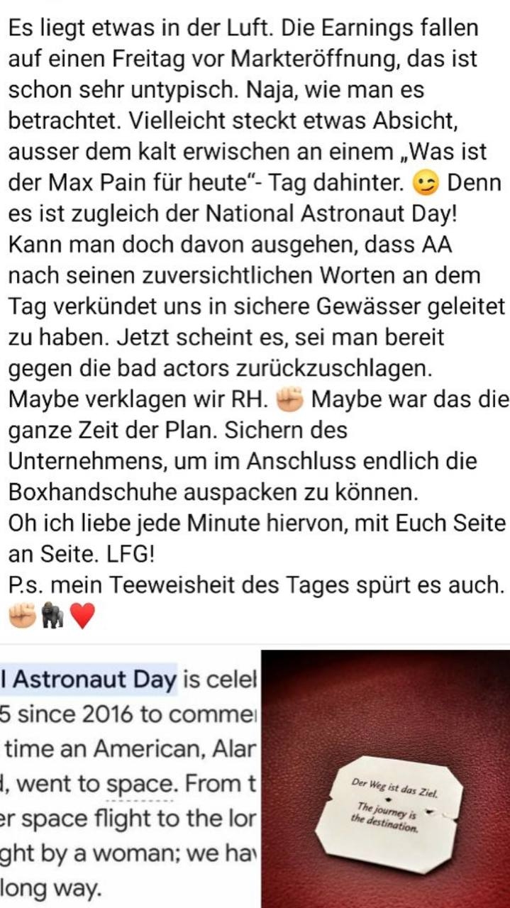 Auch bin ich gespannt, ob ich überhaupt eine Mitteilung bekomme, da bei mir AMC-Aktien auch in den USA verwahrt werden.