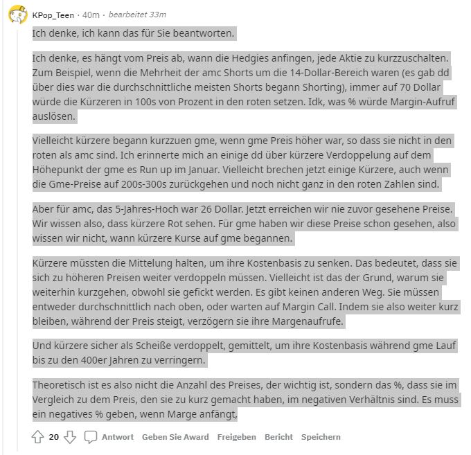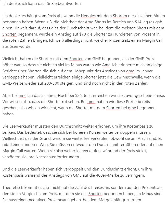 Die Rolle einiger Pressevertreter ja gar ganzer Verlage und Portale finde ich bei der ganzen AMC Berichterstattung (und nicht nur da!) ungeheuerlich und skandalös. Diese falsche Berichterstattung sollte mMn unbedingt untersucht werden und harte Konsequenzen nach sich ziehen.