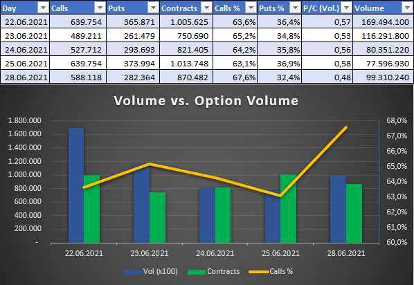 Die Daten werden schon stimmen, sie stammen von FINRA, Darkpooldaten müssen innerhalb von 24h gemeldet werden. Mit APIs kann man auf viele Daten live zugreifen (geht offenbar bspw. über Interactive Brokers), auch der marketchameleon.com hat Live-Daten und kann daher auch den Anteil des Handels über Darkpools live darstellen.