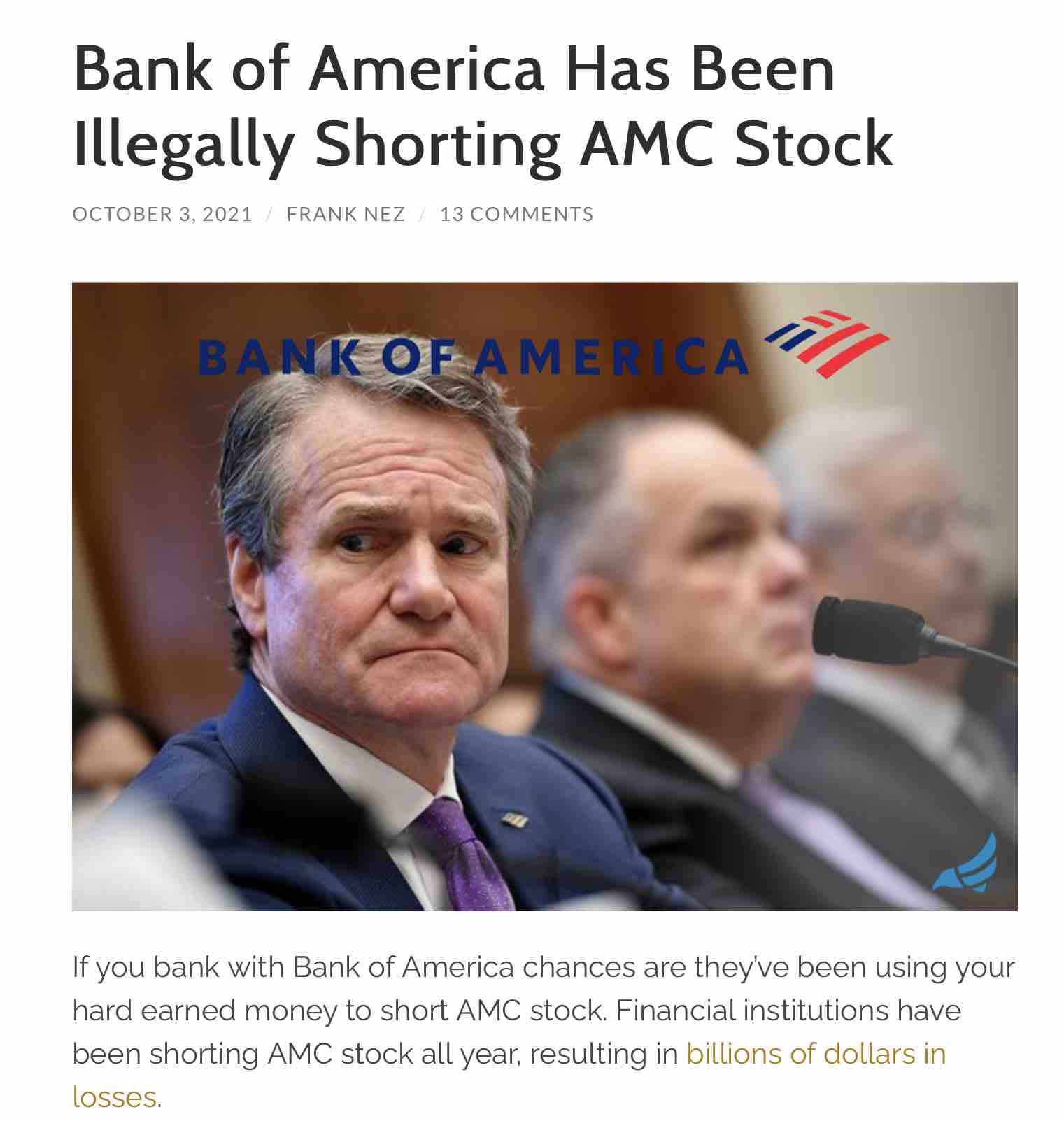 Die Bank of America steht auf der Liste der 10 größten Leerverkäufer von AMC-Aktien. Die BofA ist dafür bekannt, dass sie eine nicht vertrauenswürdige Bank für die Menschen ist, daher ist es keine Überraschung.