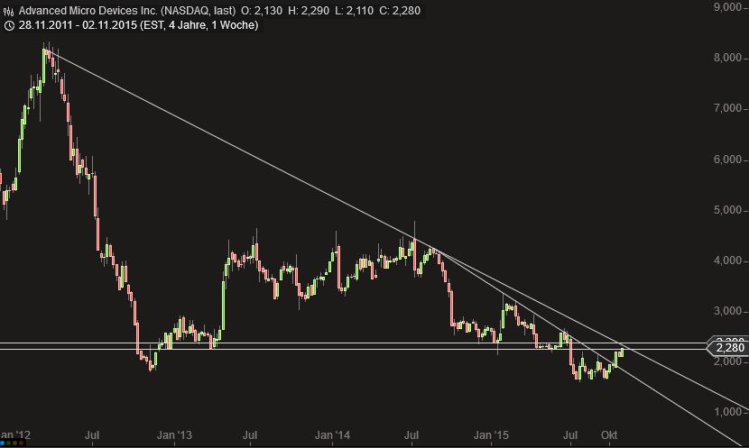Besonders Interessant im Hinblick auf die Bewertung (AMD 0,4 fach, gemessen am Umsatz, Intel 2,4 fach, Qualcomm gar 4 fach), mit anderen Worten, Qualcomm ist gemessen am Umsatz 10mal höher bewertet! Wenn es AMD tatsächlich gelingen sollte, nachhaltig in die Gewinnzone zu kommen, wird sich der Kurs vervielfachen, wenn nicht, Geld weg....