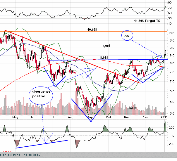 Ich hab heute meinen Short verkauft - mit ganzen 12% Gewinn, und gehe jetzt long, u.a. weil der Kurs so schön gefallen ist (aber auch Aufwärtsbewegungen drin waren - die Unruhe gefällt mir), weil die Quartalszahlen solide waren und weil Barclays das Kursziel auf 10 USD angehoben hat und eine Konsolidierung nach oben erfolgen dürfte. Meiner Meinung nach.