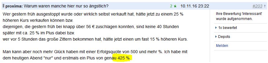 Privat laufe ich manchmal Gefahr mich von der Schlappschwänzigkeit unserer Zeit anstecken zu lassen. Als Unternehmer empfinde ich Trump jedoch anders. Meine Immobilien (Grundstücksaufteilungen als Student begonnen) habe ich auch niemals mit Argumenten verkaufen können, dagegen sehr gut mit einer teils bizarren Show. Es kommt bei einem Lehrer, Siemens Ing. oder anderen Menschen ohne eigene Fantasie, absolut nur auf das (nicht verstandene) Gefühl an. Die Amerikaner sind Meister auf dem Gebiet. In Deutschland hört man in der heutigen Zeit dagegen, anstelle von saftigem Hardrock, von einem 'Mann????' aus dem Lautsprecher jammern „und der Regen wäscht die Tränen vom Gesicht“ - und ähnlich weichgespülten Mist.