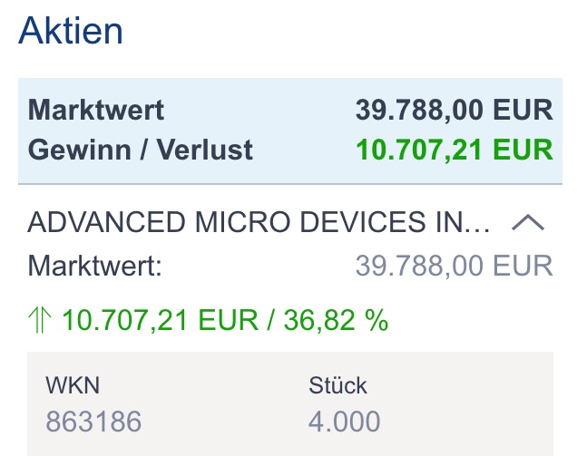 Wer bereit ist, das Risiko einzugehen und der Meinung ist, AMD bringt es noch zu Kursen bis zu 20 der investiert jetzt natürlich nochmals.