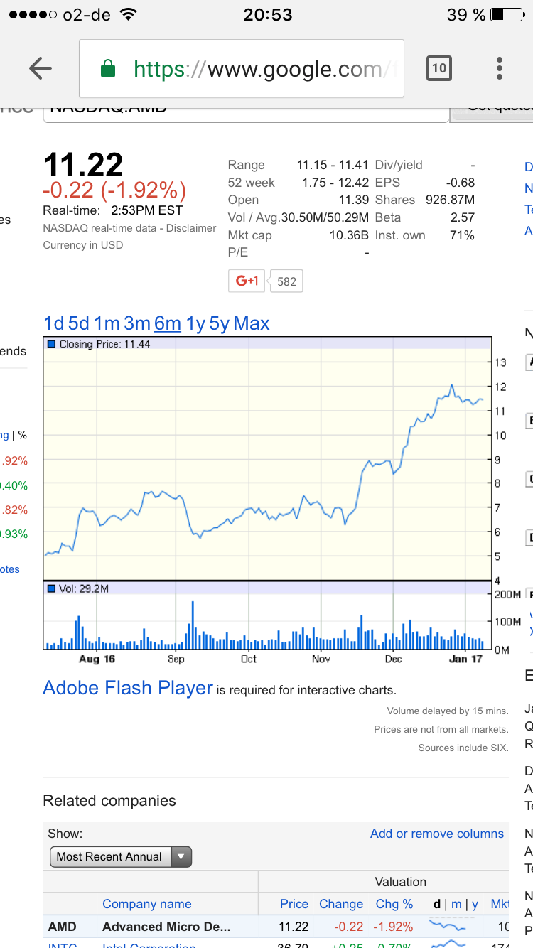Das soll nicht heißen, dass ich nicht glaube, dass AMD wächst (sonst hätte ich nicht soviel investiert), aber bevor die Kerne nicht auf dem Markt und unabhängig getestet sind, und sich dann auch die Verkaufszahlen im ER niederschlagen, besteht immer noch ein Risiko. Von daher: "kann kaum etwas schiefgehen ist schon richtig". Bis März immer eine Hand an der Reißleine lassen, aber nur betätigen, wenn es handfeste schlechte Neuigkeiten gibt, nicht weil der Kurs absackt.