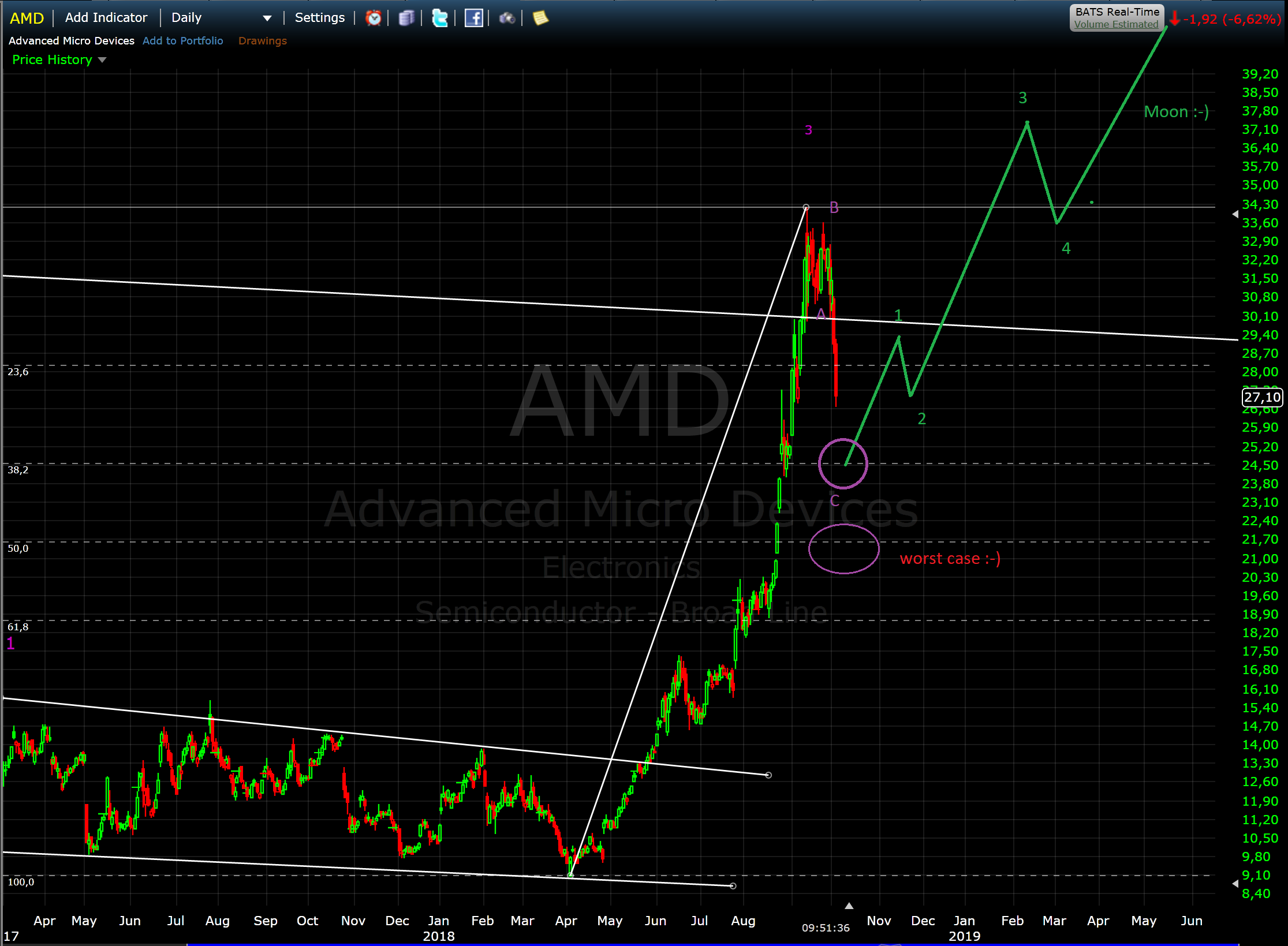 Bei AMD ist aber alles möglich: Die Aktien kann locker nochmals 10%+ fallen, auf etwa gleichem Niveau hin und her zappeln oder komplett gegen den Markttrend drehen und die nächsten Tage paar $ nach oben steigen.