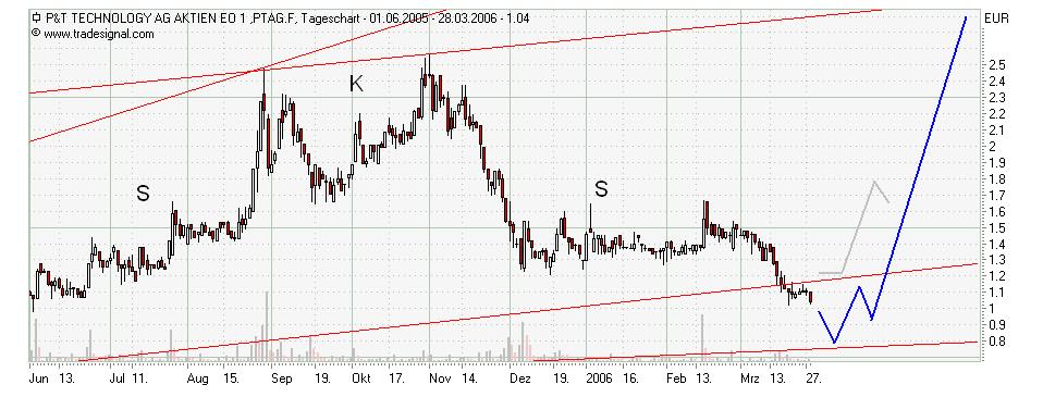 Bei der Comerzbank ist die EECH Group ein klarer kauf der Chart befindet sich langfristig im aufwerts Trend und ist in der Konsolidiernungsphase und sehr volatiel daher die starken schwankungen solange die marke von 0,75 Cent nicht durchbrochen wird ist der aufwertstrend in tackt und sollte man die Aktie bei schwachen tagen kaufen bei sehr pesimistischer schätzung ist die Aktie 2007 1,50 Euro wert sont drüber