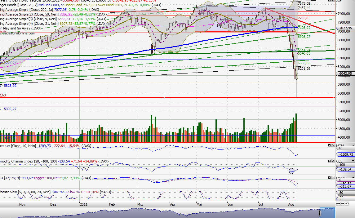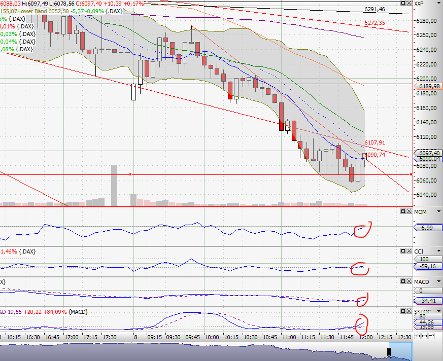 Ich erwarte eine Erholung bis zu einem der Downtrends. Dort wird sich entscheiden, ob weiter up geht, oder doch eher abwärts. Die Indikatoren sehen so schlecht nicht aus - vielleicht kommt der MACD ja auch mal auf die Idee, ein Kaufsignal zu leiferen... Stark genug überverkauft ist er ja..