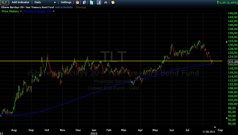 ist offensichtlich. Ein Votum für den Bullmarkt ist bzw war (auf diesem Niveau) identisch mit einem gegen die Bonds..