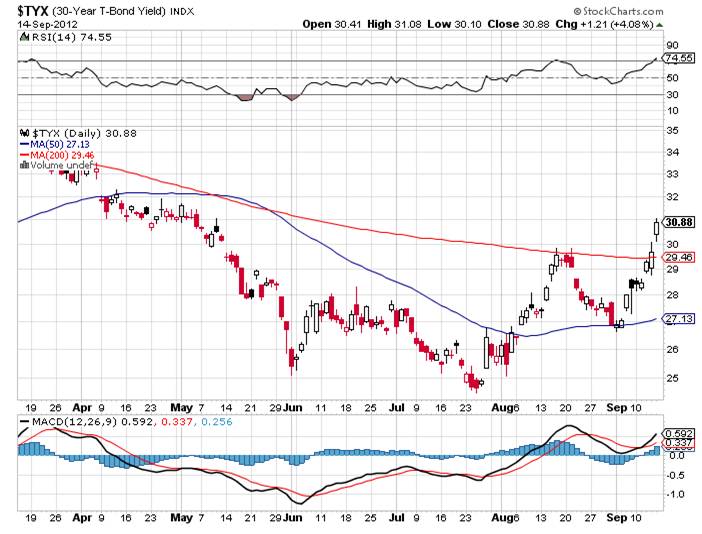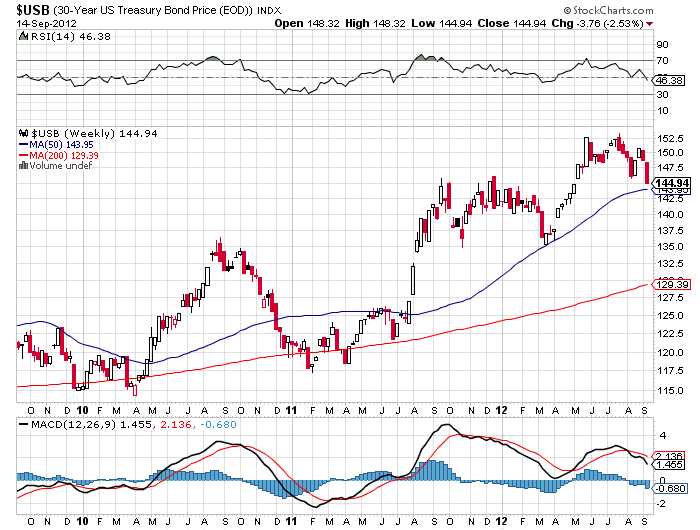 Warum steigen also die Bonds wider Erwarten der Masse? Weil es eine Flucht in Sicherheit gibt und weil die Inflation ausbleibt. Hier lag ich übrigens richtig mit meiner Einschätzung steigender Bondpreise. (Den Fall vom Top im Juni ist bislang nicht mehr als eine Korrektur)