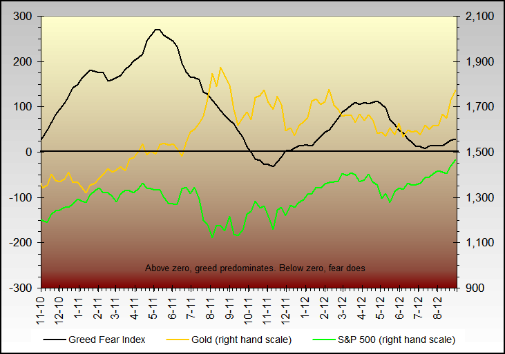 Most recently, in the first quarter of 2012, stocks staged their best run in decades, and the index showed pure greed.