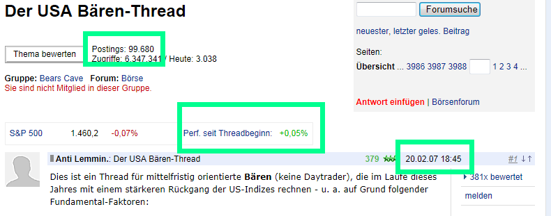 Nur ergänzend: An unserer Makrodiskussion finde ich gut, dass sie vom Trading klar getrennt verläuft. Es ist wirklich ein Grundfehler vieler Stammbären, dies zu vermengen, also zu erwarten, dass die eigene schlechte Meinung zu Geldpolitik und Finanzkapital sich in fallenden Kursen niederschlagen müsste...