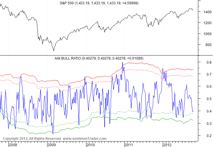 Mit meinen Kostolany-Analysen versuche ich hingegen das Sentiment zu analysieren. Was i.d.R. auch zu ähnlichen Ergebnissen führt. Leider habe ich meiner privaten Analyse 06-2011 nicht geglaubt, die 2:1 gegen Aktien ausging. Der Crash kam direkt hinterher, mein Depot ging mit runter. Durch meine Analysen konnte ich aber immerhin mein Depot günstig aufstocken, mein Aktiendepot war damals im Vergleich zu heute sehr übersichtlich bestückt.