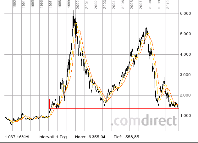 Das Risiko auf unter 1000 zu fallen ist zwar nicht unerheblich aber andererseits wieviel schlechter kann der Newsflow noch werden im Vergleich zu 2010 und jetzt.