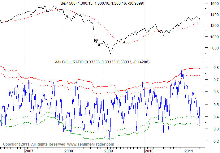 The normalized CBOE put call ratio does a good job of finding important inflection points (but it missed the March 2009 low). And the current reading confirms that what we are seeing is truly extreme.