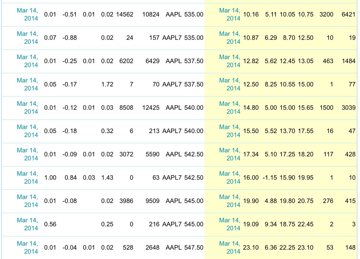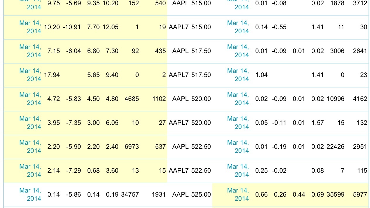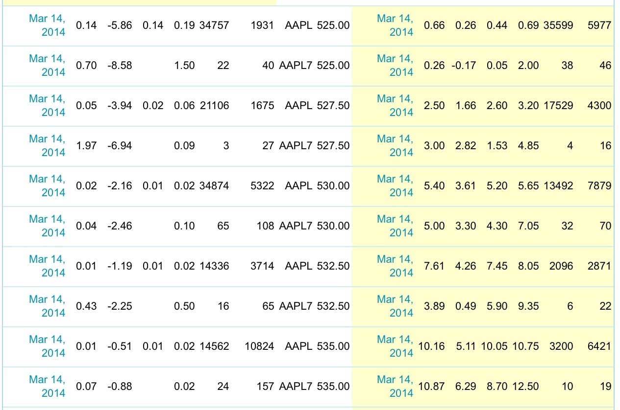 Man beachte bei den Calls die >34.000er bei 525$ und das >34.000er bei 530$, zudem das >20.000er bei 527,50 und die >14.000er bei 532,50 und 535$.