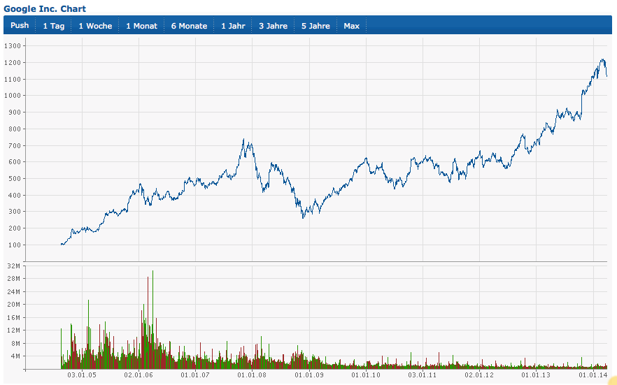 Richtig ist aber, dass sich Google hervorragend geschlagen hat. Zu beachten ist aber, dass es im wesentlichen zwei Schübe waren, die für den Anstieg gesorgt haben: