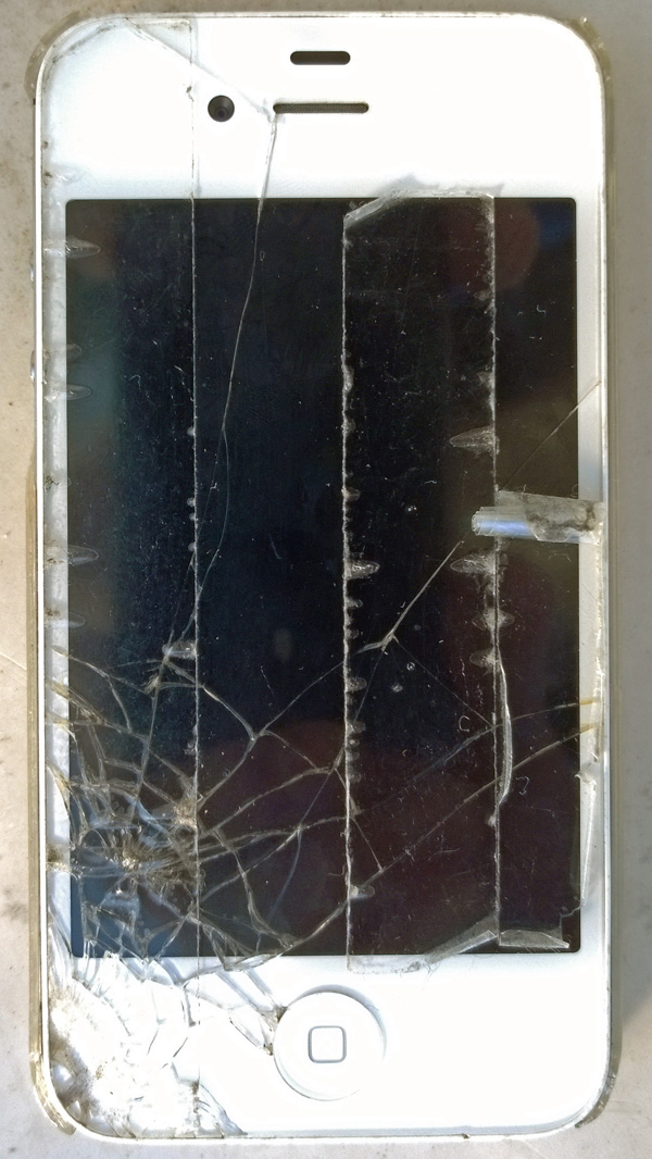 "Sag mal: vor sechs Monaten gab ich schon mal den Tipp, dass man für um die hundert Euro ein neues Glas bekommt. So kannst Du Deine Tochter doch nicht unters Volk schicken. Die Arme kann doch niemandem das iPhone zeigen. :-)"