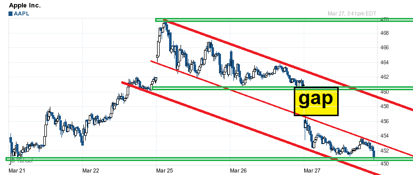 Der Kurs bewegt sich kaum. Wenig Umsätze. Alles langsam aber sicher nach unten. Einfach langweilig! Die Luft ist raus aus Apple.