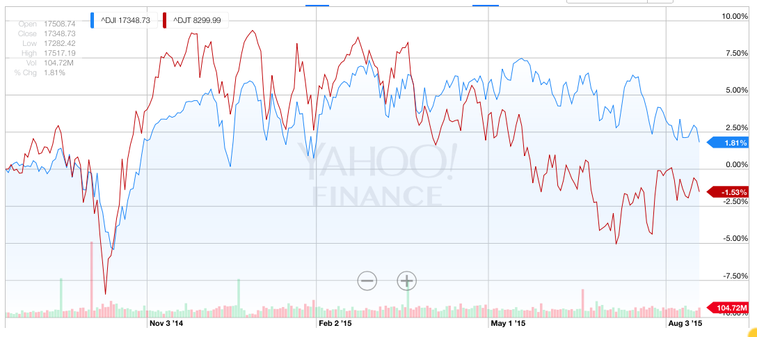 Ansonsten kennt ihr sicher das Henne-Ei Problem? Der DJT scheint mir eher in diesem Fall ein Indikator für die Krise in China zu sein - da die USA viele Waren aus China importieren, China aber kriselt, schlägt sich das im DJT nieder - aber der DJI trotzt dem seit sechs Monaten.