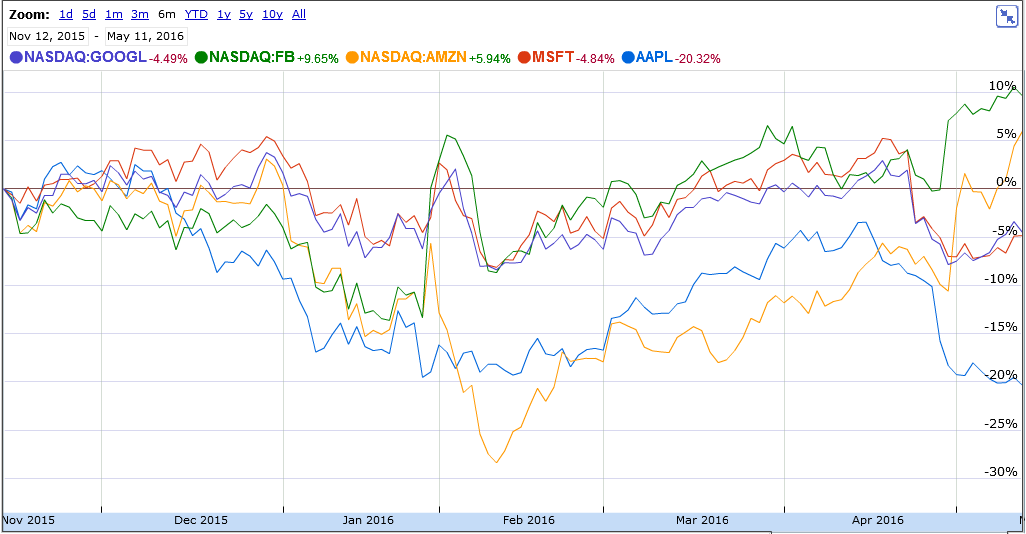 Ansonsten bin ich Long in MSFT und GOOGL. Na ja, bescheiden. Und Long in AMZN und FB. Das läuft super.